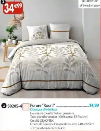 L'offre est disponible dans plusieurs magasins, vérifiez tous les produits pour obtenir le Parure raoni le moins cher. Si vous souhaitez savoir si l'article est en vente avec une plus grosse remise dans un autre magasin, consultez la catégorie 'Supermarché'. Ces offres pourraient aussi vous intéresser : La parure, Parure Isaac & Parure Justine.
