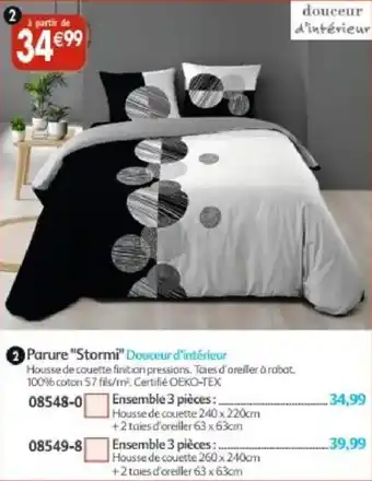 L'offre est disponible dans plusieurs magasins, vérifiez tous les produits pour obtenir le Parure stormi douceur d'intérieur le moins cher. Si vous souhaitez savoir si l'article est en vente avec une plus grosse remise dans un autre magasin, consultez la catégorie 'Supermarché'. Ces offres pourraient aussi vous intéresser : Parure iris douceur d'intérieur, Tapis de bain douceur d'intérieur & Eponge tendresse douceur d'intérieur.