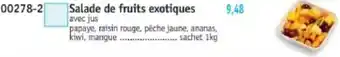 L'offre est disponible dans plusieurs magasins, vérifiez tous les produits pour obtenir le Salade de fruits exotiques le moins cher. Si vous souhaitez savoir si l'article est en vente avec une plus grosse remise dans un autre magasin, consultez la catégorie 'Supermarché'. Ces offres pourraient aussi vous intéresser : 6 Cônes fruits exotiques, Salade légumière & Salade composée.