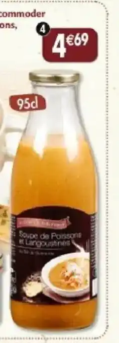 L'offre est disponible dans plusieurs magasins, vérifiez tous les produits pour obtenir le Soupe de poissons et langoustines le moins cher. Si vous souhaitez savoir si l'article est en vente avec une plus grosse remise dans un autre magasin, consultez la catégorie 'Supermarché'. Ces offres pourraient aussi vous intéresser : Soupe de poissons et langoustines, Soupe de poissons et langoustines & Soupe de poissons.