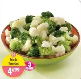 L'offre est disponible dans plusieurs magasins, vérifiez tous les produits pour obtenir le Trio de fleurettes le moins cher. Si vous souhaitez savoir si l'article est en vente avec une plus grosse remise dans un autre magasin, consultez la catégorie 'Supermarché'. Ces offres pourraient aussi vous intéresser : Trio de fleurettes, Trio de fleurettes & Thiriet - trio de fleurettes 673.