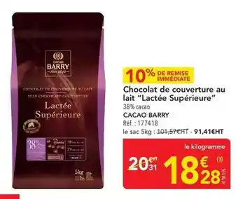 Cacao barry - chocolat de couverture au lait lactée supérieure : offres et promos METRO à découvrir