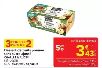 Charles & alice - dessert de fruits pomme sans sucre ajouté offres et promotions en ligne chez METRO