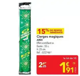 L'offre est disponible dans plusieurs magasins, vérifiez tous les produits pour obtenir le Cierges magiques le moins cher. Si vous souhaitez savoir si l'article est en vente avec une plus grosse remise dans un autre magasin, consultez la catégorie 'Grossistes'. Ces offres pourraient aussi vous intéresser : Set 6 éponges blanc magiques, FINI Bonbons Halal & offre 3.