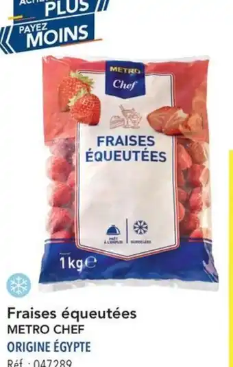 Le prix de l'offre Fraises équeutées metro chef se trouve également en haut de la page, ainsi que la date à laquelle l'offre est disponible. Vous pouvez également vérifier les prix dans le Catalogue METRO actuel ou sur le site Internet de METRO. Les offres vous permettent d'acheter les produits METRO au prix le plus bas.
