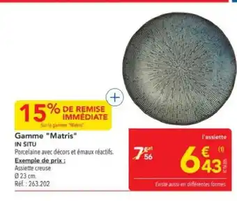 En plus de l'offre IN SITU Gamme Matris, METRO propose une large gamme de produits. Consultez le Catalogue METRO hebdomadaire pour découvrir les meilleures offres et promotions. En plus de IN SITU Gamme Matris, il y a aussi : In SITU Gamme Sélène, iN SITU Gamme Axone & IN SITU Gamme Darkae.