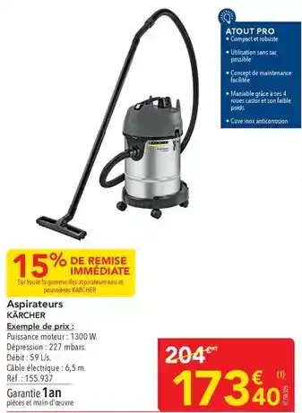 En plus de l'offre Kärcher - aspirateurs, METRO propose une large gamme de produits. Consultez le Catalogue METRO hebdomadaire pour découvrir les meilleures offres et promotions. En plus de Kärcher - aspirateurs, il y a aussi : KÄRCHER Aspirateurs, Kärcher - nettoyant vitre alvache & offre 3.