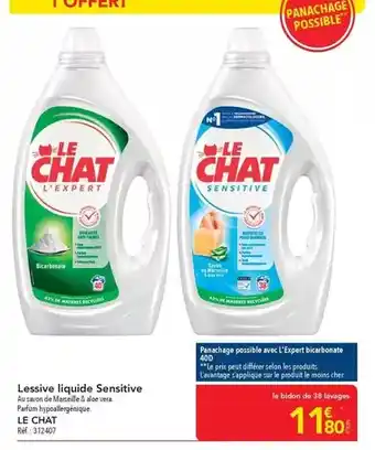 L'offre est disponible dans plusieurs magasins, vérifiez tous les produits pour obtenir le La queue du chat - lessive liquide sensitive le moins cher. Si vous souhaitez savoir si l'article est en vente avec une plus grosse remise dans un autre magasin, consultez la catégorie 'Grossistes'. Ces offres pourraient aussi vous intéresser : Lessive liquide LE CHAT Sensitive, La queue du chat - lessive liquide & LE CHAT Lessive liquide.