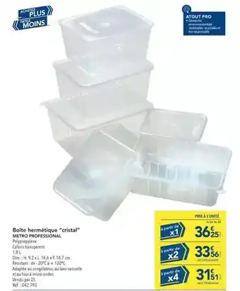 Actuellement en offre chez METRO : Metro - boîte hermetique cristal ✅ Valable du 27-03 au 20-05.