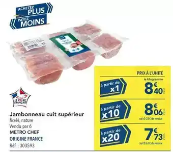 Actuellement en offre chez METRO : Metro - jambonneau cuit supérieur ✅ Valable du 29-01 au 25-02.
