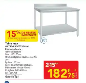 Une promotion METRO PROFESSIONAL Table inox prévue la semaine prochaine ?