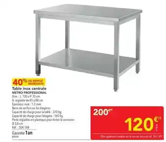 Actuellement en offre chez METRO : Metro - table inox centrale ✅ Valable du 27-03 au 20-05.
