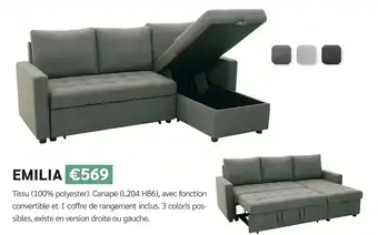 Quand Emilia sera-t-elle en promotion ? Ou encore : "Est-ce que Emilia sera en promotion la semaine prochaine ?" C’est une question fréquente. Beaucoup de consommateurs établissent leur liste de courses à l’avance. Pour cette raison, nous mettons en ligne les informations sur les promos à venir dès qu’elles sont connues. Cela vous permet de planifier vos achats et de faire de bonnes affaires. Consultez régulièrement notre site pour savoir si une nouvelle promo sur Emilia arrive bientôt chez Meubles Crack.Questions fréquemment posées au sujet de Emilia
