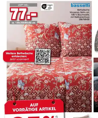 Actuellement en offre chez Möbel Martin : BASSETTI Bettwäsche Vincenza, Satin, rot, 100% Baumwolle, mit Reißverschluss ✅ Valable du 1-01 au 31-01.