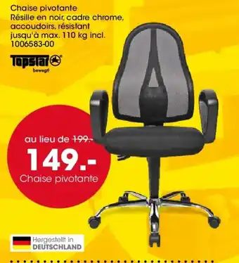 En plus de l'offre Chaise pivotante, Möbel Martin propose une large gamme de produits. Consultez le Catalogue Möbel Martin hebdomadaire pour découvrir les meilleures offres et promotions. En plus de Chaise pivotante, il y a aussi : Chaise pivotante Tissu/résille en noir, accoudoirs et roulettes pour sol dur, Roulette pivotante & Chaise.