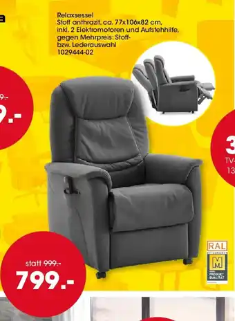 Actuellement en offre chez Möbel Martin : Relaxsessel Stoff anthrazit ✅ Valable du 1-01 au 31-01.