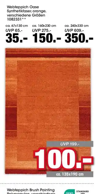 Actuellement en offre chez Möbel Martin : Webteppich Oase Synthetikfaser, orange, verschiedene Größen ✅ Valable du 1-01 au 31-01.