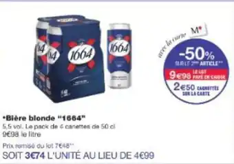 Actuellement en offre chez Monop' : 1664 Bière blonde ✅ Valable du 6-04 au 19-04.