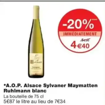 A.O.P. Alsace Sylvaner Maymatten Ruhlmann blanc : offres et promos Monop' à découvrir