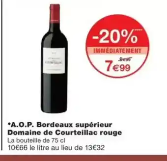 Actuellement en offre chez Monop' : A.O.P. Bordeaux supérieur Domaine de Courteillac rouge ✅ Valable du 16-02 au 1-03.