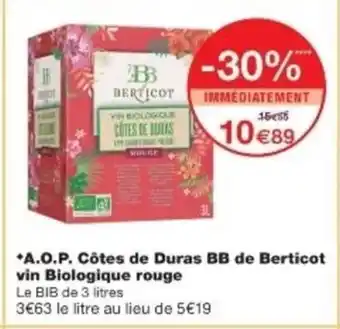Offre A.O.P. Côtes de Duras BB de Berticot vin Biologique rouge chez Monop'