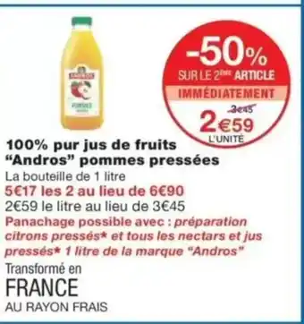 ANDROS 100% pur jus de fruits pommes pressées offres et promotions en ligne chez Monop'