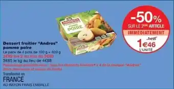 Actuellement en offre chez Monop' : ANDROS Dessert fruitier pomme poire ✅ Valable du 20-01 au 1-02.
