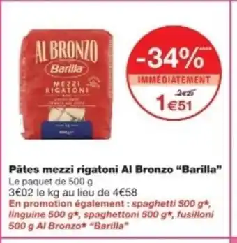 BARILLA Pâtes mezzi rigatoni Al Bronzo : offres et promos Monop' à découvrir