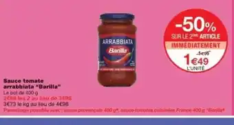 Offre BARILLA Sauce tomate arrabbiata chez Monop'
