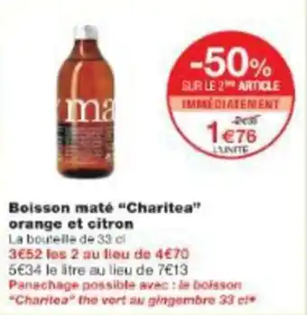 Actuellement en offre chez Monop' : Boisson maté charitea orange et citron ✅ Valable du 20-04 au 3-05.