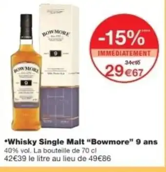 Offre BOWMORE Whisky Single Malt 9 ans chez Monop'