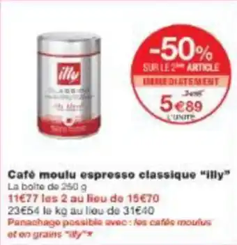 Café moulu espresso classique illy offres et promotions en ligne chez Monop'