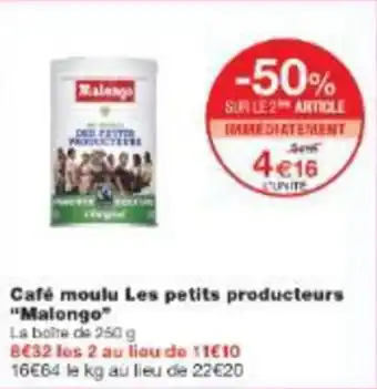 Actuellement en offre chez Monop' : Café moulu les petits producteurs malongo ✅ Valable du 20-04 au 3-05.