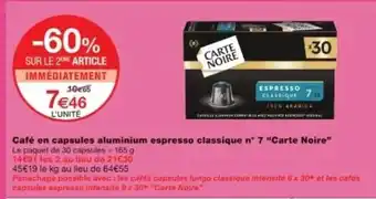 CARTE NOIRE Café en capsules aluminium espresso classique n° 7 offres et promotions en ligne chez Monop'