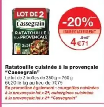 Offre CASSEGRAIN Ratatouille cuisinée à la provençale chez Monop'