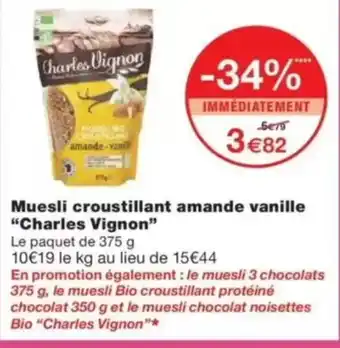 CHARLES VIGNON Muesli croustillant amande vanille : offres et promos Monop' à découvrir