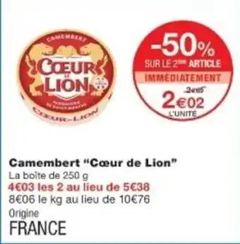 Actuellement en offre chez Monop' : COEUR DE LION Camembert ✅ Valable du 20-01 au 1-02.
