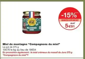 Actuellement en offre chez Monop' : COMPAGNONS DU MIEL Miel de montagne ✅ Valable du 16-02 au 1-03.