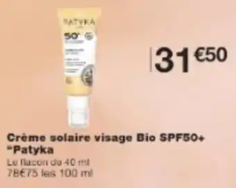 Crème solaire visage bio spf50+ patyka offres et promotions en ligne chez Monop'