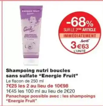 Offre ENERGIE FRUIT Shampoing nutri boucles sans sulfate chez Monop'