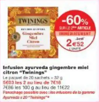 Actuellement en offre chez Monop' : Infusion ayurveda gingembre miel citron twinings ✅ Valable du 20-04 au 3-05.