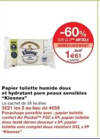 Actuellement en offre chez Monop' : KLEENEX Papier toilette humide doux et hydratant pure peaux sensibles ✅ Valable du 20-01 au 1-02.