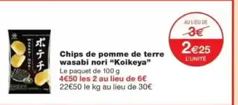 Actuellement en offre chez Monop' : KOIKEYA Chips de pomme de terre wasabi nori ✅ Valable du 16-02 au 1-03.