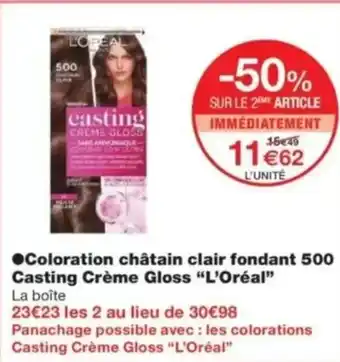 Actuellement en offre chez Monop' : L'ORÉAL Coloration châtain clair fondant 500 Casting Crème Gloss ✅ Valable du 16-02 au 1-03.