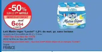 LACTEL Lait Matin léger 1,2% de mat. gr. sans lactose : offres et promos Monop' à découvrir