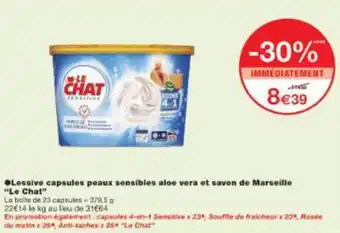 Lessive capsules peaux sensibles aloe vera et savon de marseille le chat : offres et promos Monop' à découvrir