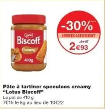 En plus de l'offre LOTUS BISCOFF Pâte à tartiner speculoos creamy, Monop' propose une large gamme de produits. Consultez le Catalogue Monop' hebdomadaire pour découvrir les meilleures offres et promotions. En plus de LOTUS BISCOFF Pâte à tartiner speculoos creamy, il y a aussi : LOTUS BISCOFF Pâte à tartiner speculoos creamy, Lotus - pâte à tartiner speculoos creamy & Pâte à tartiner Biscoff LOTUS Creamy, 410 g.