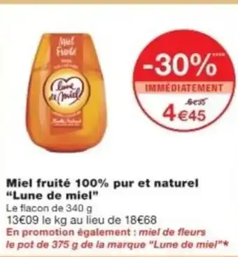 LUNE DE MIEL Miel fruité 100% pur et naturel offres et promotions en ligne chez Monop'