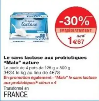 Offre MALO Le sans lactose aux probiotiques nature chez Monop'