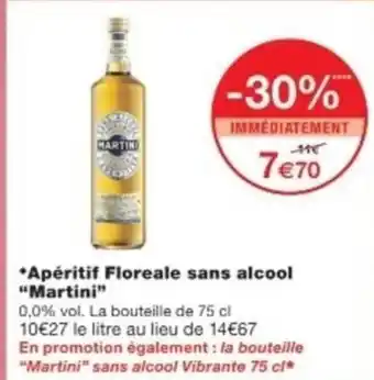 L'offre est disponible dans plusieurs magasins, vérifiez tous les produits pour obtenir le MARTINI Apéritif Floreale sans alcool le moins cher. Si vous souhaitez savoir si l'article est en vente avec une plus grosse remise dans un autre magasin, consultez la catégorie 'Supermarché'. Ces offres pourraient aussi vous intéresser : MARTINI Apéritif Floreale sans alcool, Martini - aperitif sans alcool floreale & Martini apéritif à base de vin.